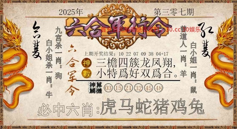 | 307期③肖 | 蛇狗鸡 | 开: 狗20 |